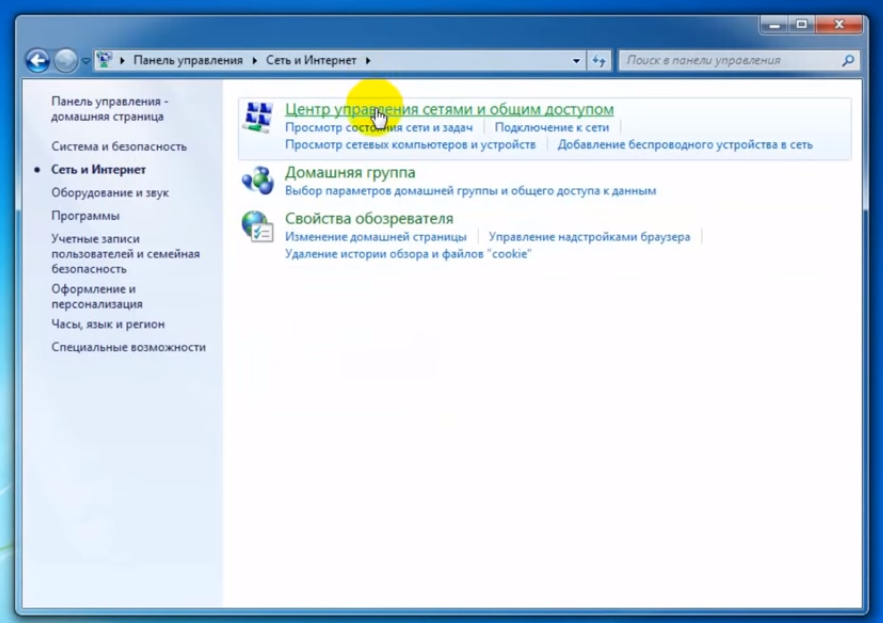 - Далее перейдите в «Центр управления сетями и общим доступом», после — «Изменение параметров адаптера».
