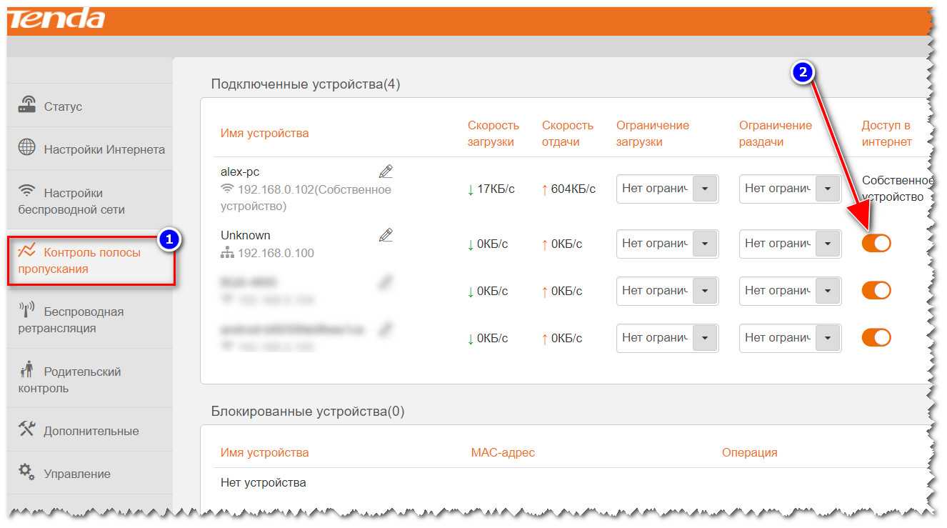 Совет #3: Некоторые роутеры обладают функцией блокировки устройств