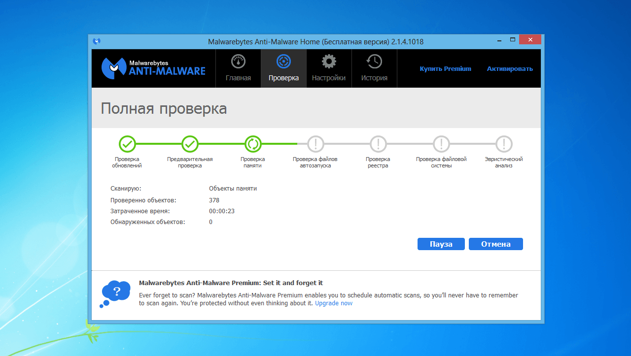В таких случаях придется прибегать к специальным anti-malware утилитам, таким, например, как программа от Malwarebytes или к любой из десятков ее «коллег по цеху», которых легко можно найти на просторах Сети.