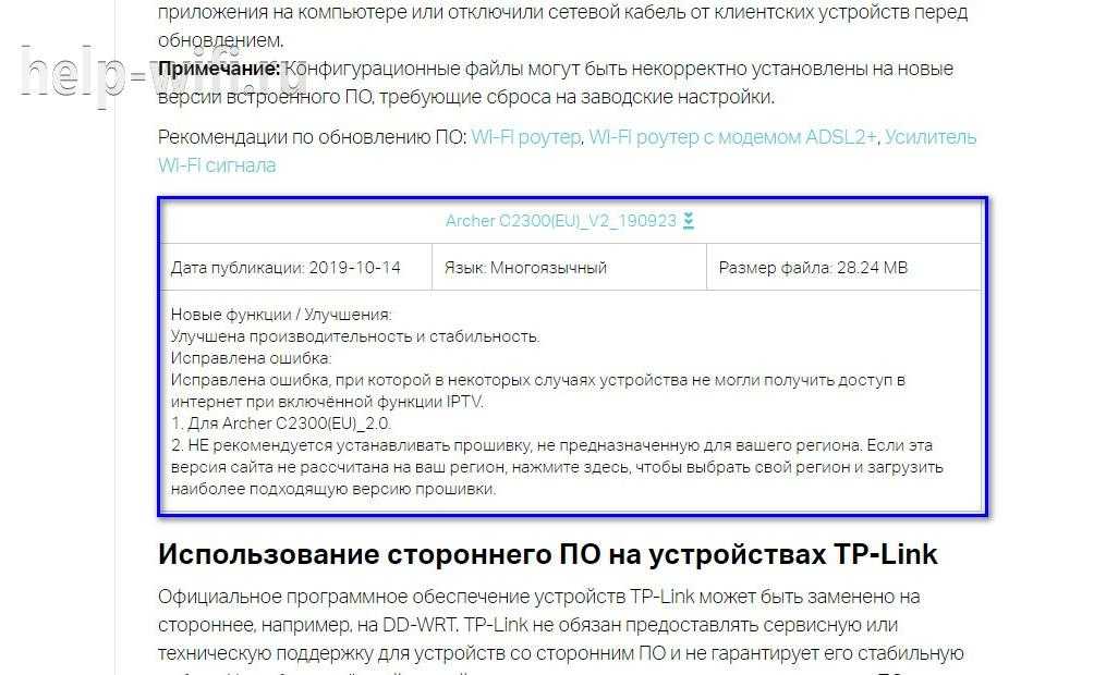 - Сравнить установленную версию прошивки с доступной для загрузки. Если она более старая, скачать актуальное ПО.
