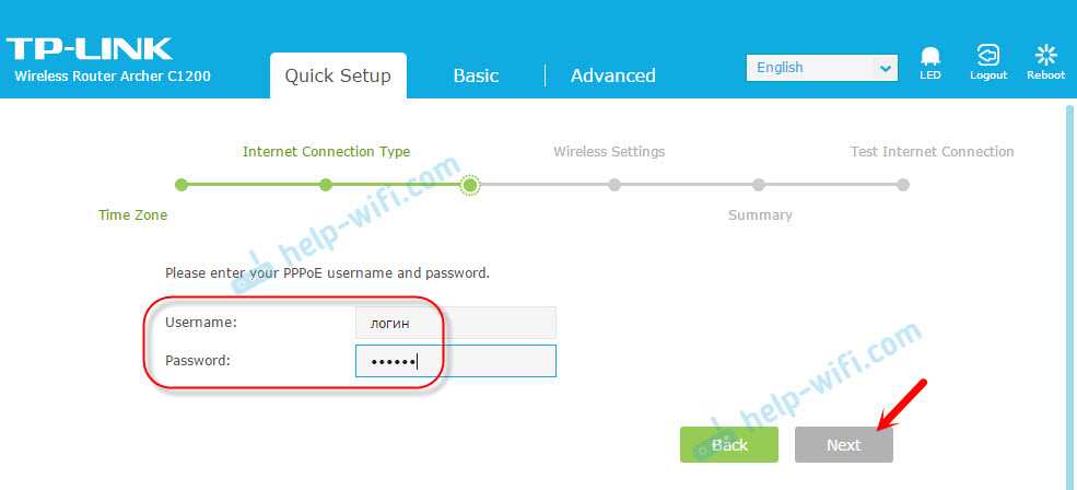 А если у вас PPPoE, или L2TP, то выбираем соответствующий тип подключения в меню, и задаем необходимые параметры, которые вам выдал провайдер. Если что, можете позвонить в поддержку провайдера, и уточнить у них всю информацию по настройке.