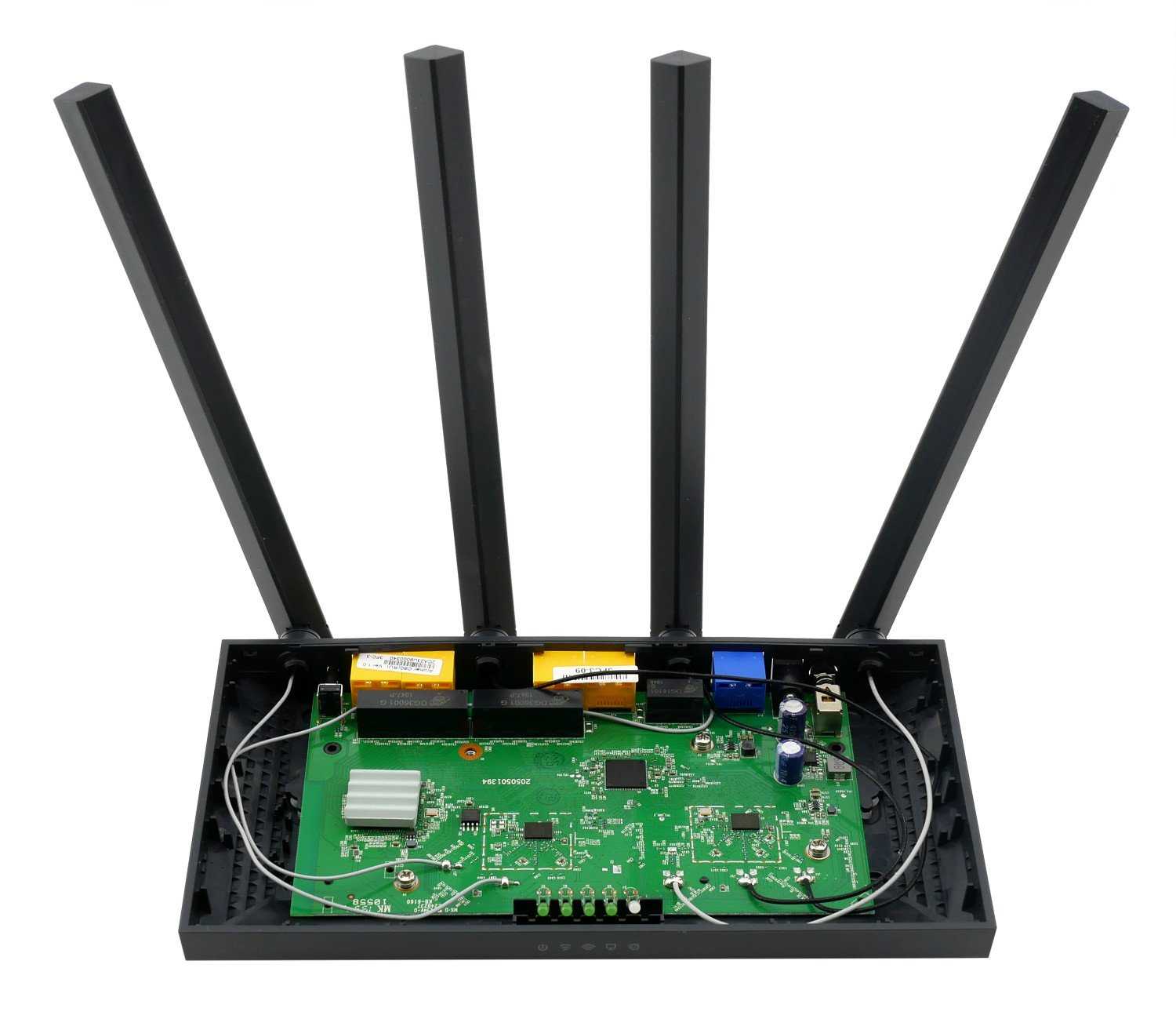 Внутренняя «начинка» TP-Link Archer C80: мы видим полноразмерную печатную плату со знакомой структурой, которую производитель использует и в других решениях.