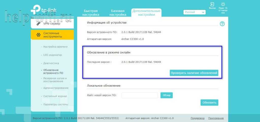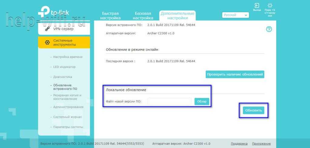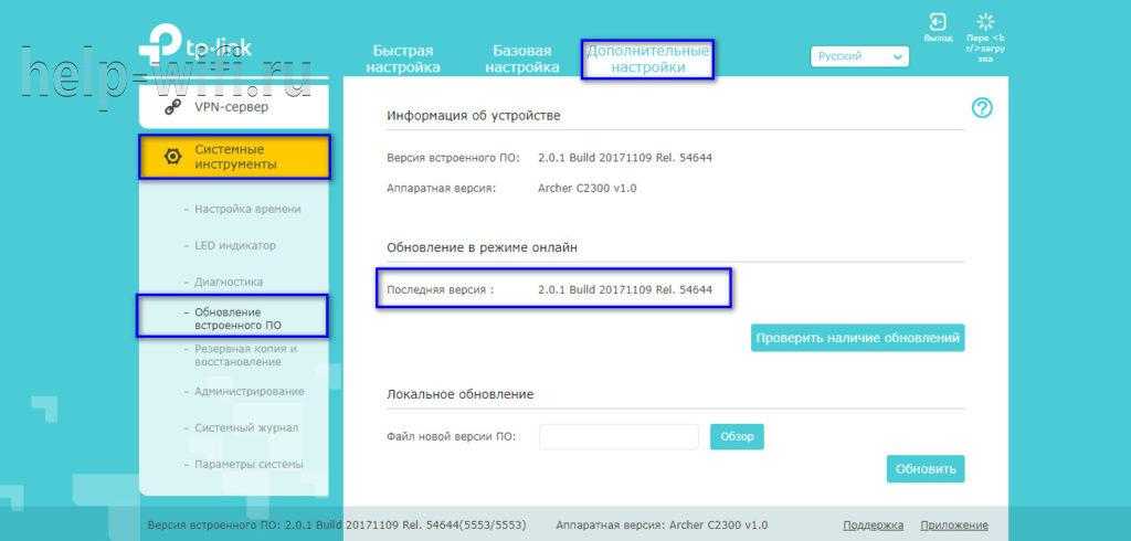- Перейти во вкладку «Дополнительные настройки», найти раздел «Системные инструменты», затем «Обновление встроенного ПО».