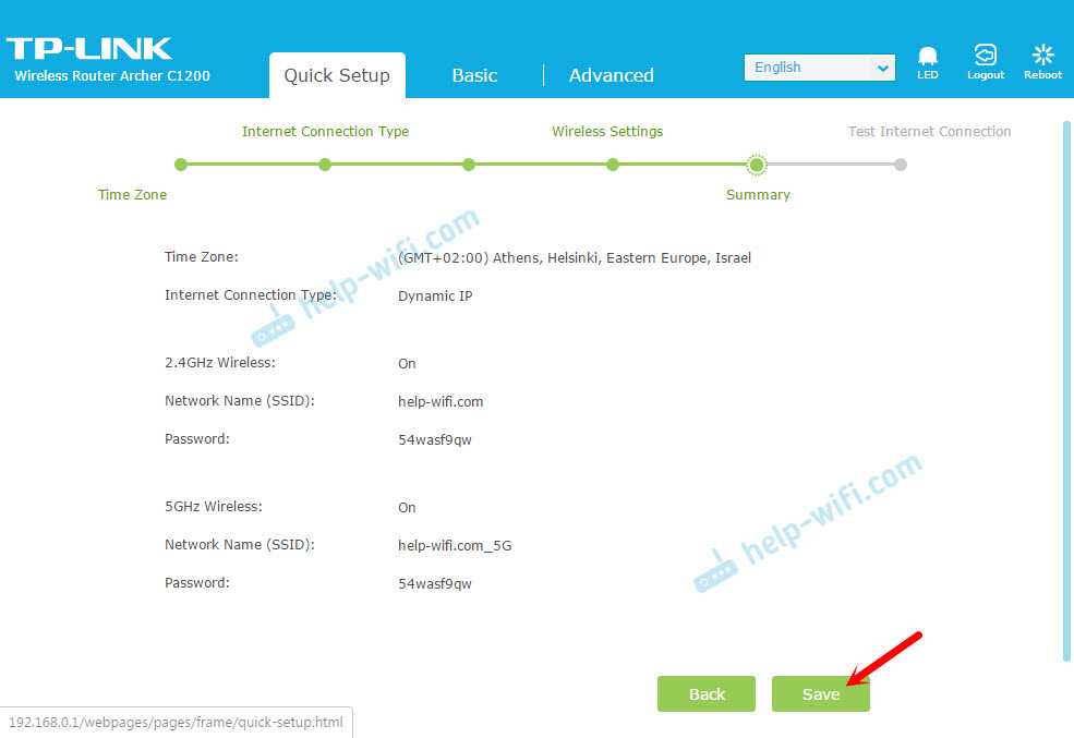 Ждем, пока роутер сохранит настройки. Если вы были подключены по Wi-Fi, и в процессе настройки сменили имя/пароль Wi-Fi сети, то нужно заново подключиться к беспроводной сети. После подключения вы сможете повторно зайти в настройки Archer A5.