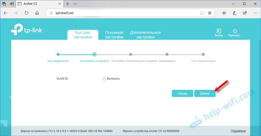Откроется меню «Быстрая настройка». С помощью этого мастера быстрой настройки можно полностью настроить маршрутизатор. Нажмите «Далее».