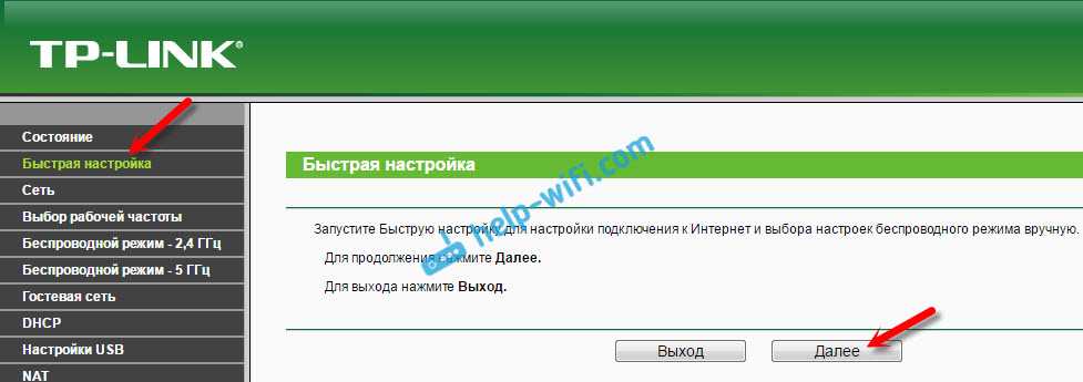 Слева переходим на вкладку «Быстрая настройка», и нажимаем кнопку «Далее».