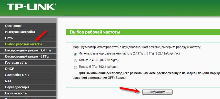Так как это двухдиапазонный роутер, то он транслирует две Wi-Fi сети. Одну на частоте 2.4 ГГц, а вторую на 5 ГГц. Если вам не нужна какая-то сеть, то предлагаю перейти на вкладку «Выбор рабочей частоты», и отключить сеть на той частоте, которая вам не нужна. Достаточно просто убрать галочку, и сохранить настройки. А можете оставить обе сети. Например, старые устройства подключать к 2.4 ГГц, а новые, которые поддерживают, к Wi-Fi 5 ГГц.