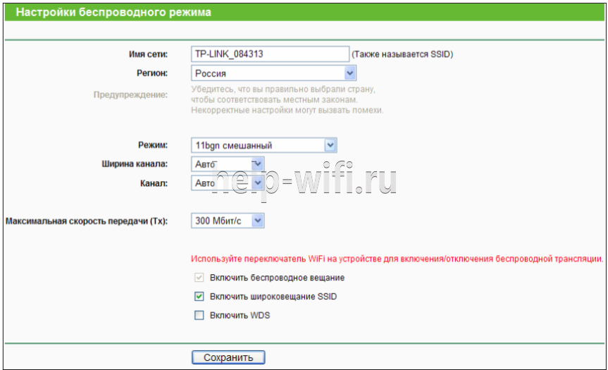 - «Включить WDS» — функция будет рассмотрена в следующем разделе. По умолчанию выключена.