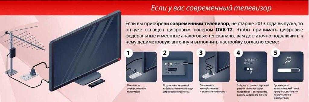 Большинство современных телевизоров известных компаний-производителей электроники имеют встроенный тюнер DVB-T2. Информацию об этом можно всегда найти в инструкции к имеющемуся телевизионному приёмнику.