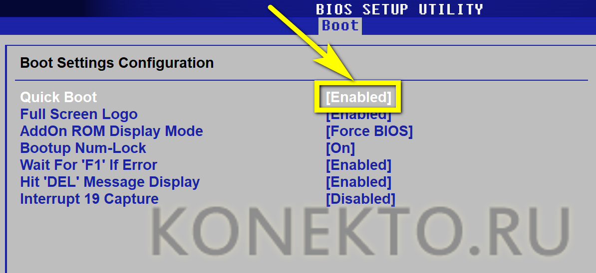 Найти подраздел Quick Boot и открыть его нажатием клавиши Enter.