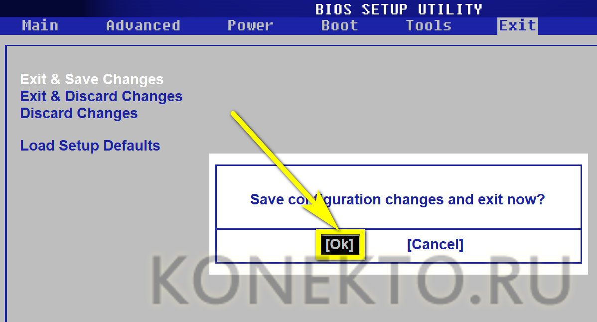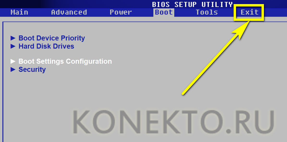 Выйти из подраздела, используя клавишу Escape (Esc), затем — перейти в раздел Exit.