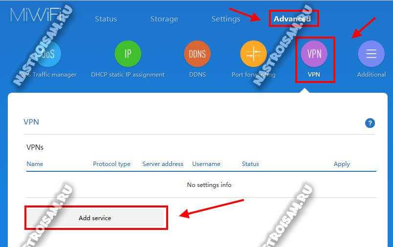 Для подключения к Интернету от Билайн необходимо создать ещё одно соединение, которое поднимается поверх DHCP. Для этого идём в раздел Advanced -> VPN: