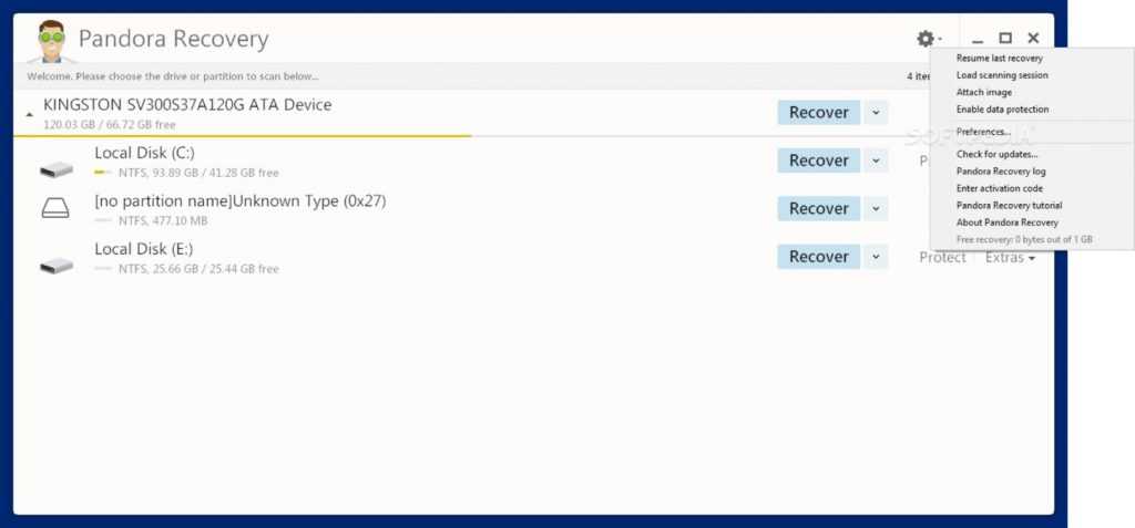 Окно программы Pandora Recovery