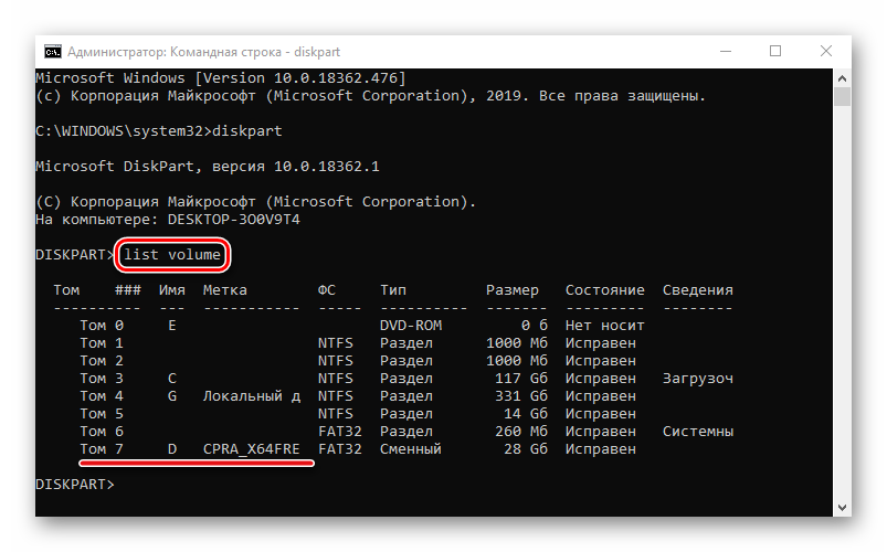 Чтобы активировать том, вводим . Если структура разделов флешки GPT, а не MBR, то эта команда не нужна, и утилита сообщит об этом. В любом случае продолжаем дальше.