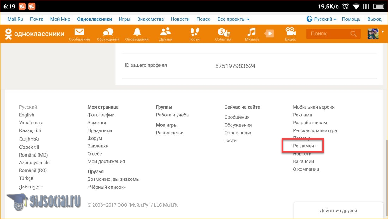 Зайдите на сайт ok.ru, внизу должна быть строка с меню. Нас интересует регламент.