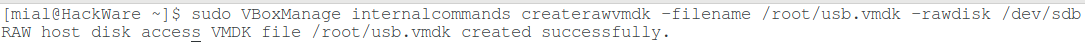 sudo VBoxManage internalcommands createrawvmdk -filename /root/usb.vmdk -rawdisk /dev/sdb
