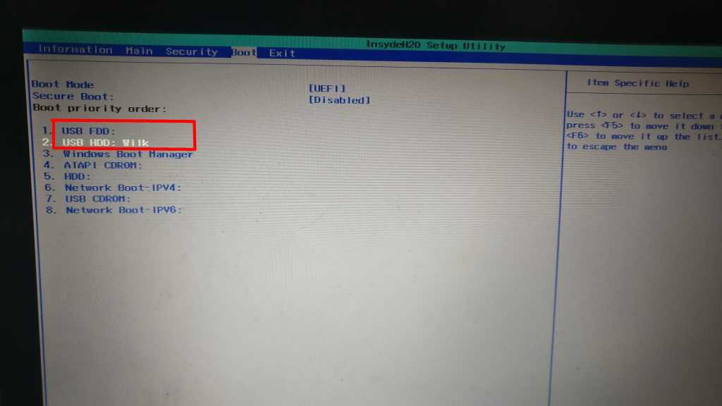 Кроме того, надо установить на первое место флешку: