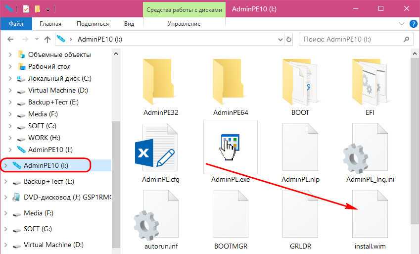 Затем распакуйте содержимое установочного образа в корень флешки: