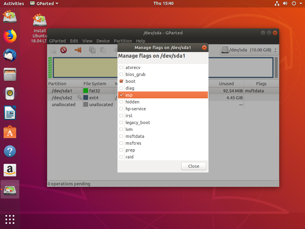 Затем нажмите «Manage Flags» и установите галочки напротив флагов «boot» и «efi».