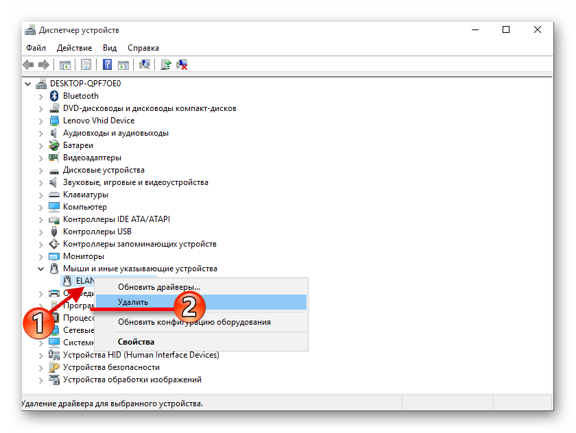 Разверните пункт «Мыши и иные указывающие устройства» и кликните правой кнопкой мыши на нужном оборудовании.