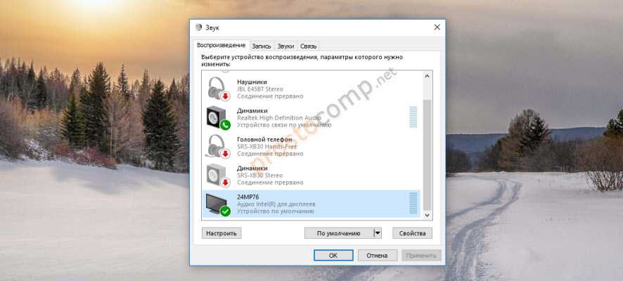 Настройка оборудования воспроизведения Windows
