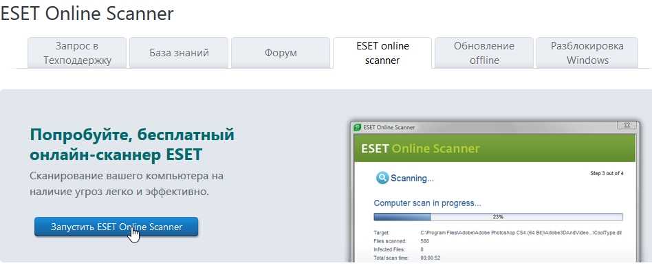 Сайт: http://www.esetnod32.ru/support/scanner/