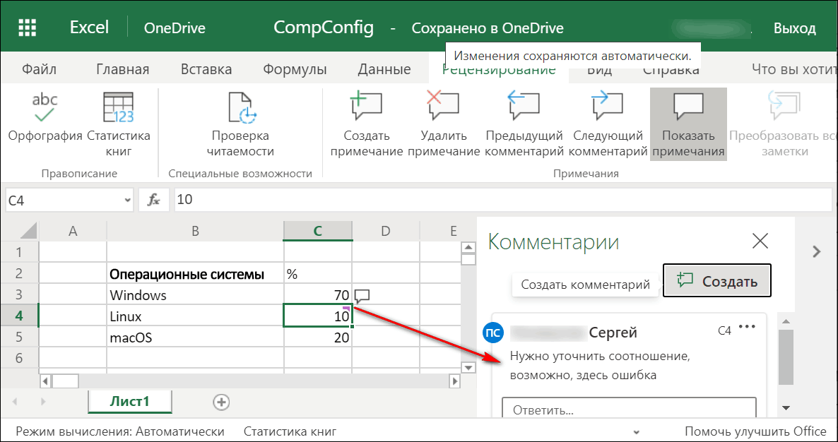 При совместной работе удобно использовать и встроенную в документ систему комментирования, доступную на вкладке «Рецензирование». Все, кто имеет доступ к файлу, могут оставлять и просматривать примечания других. Комментарии прикрепляются к конкретным местам документа и отображаются единым списком.