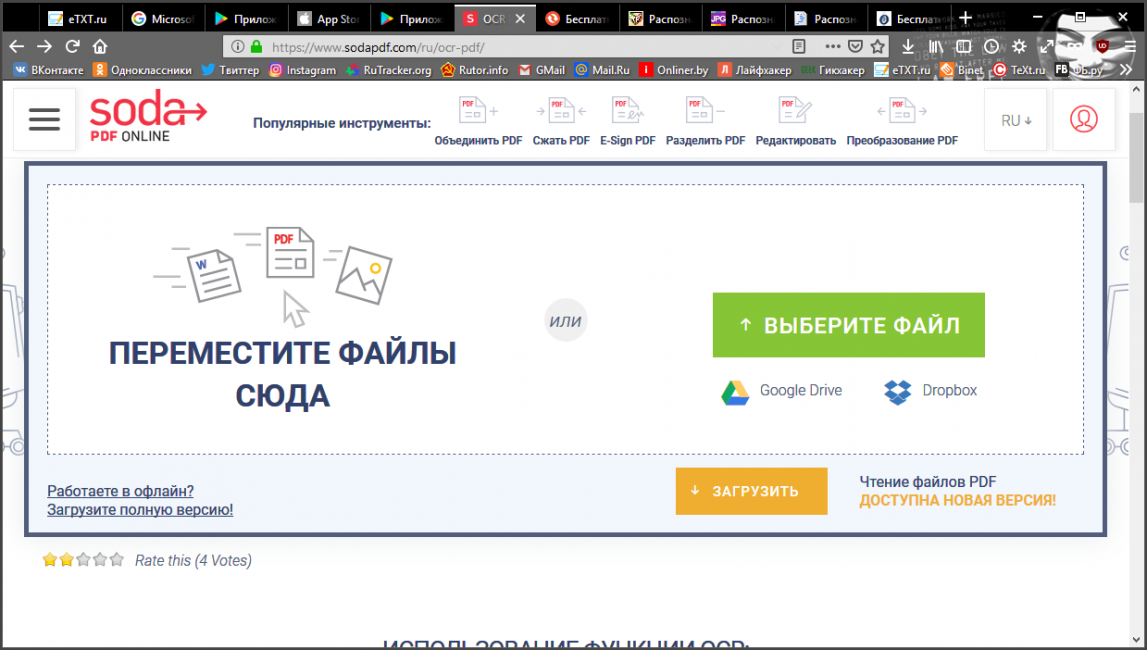 Это многофункциональный инструмент. Но тут необходимо будет зарегистрироваться, после чего вам предоставят пять бесплатных страниц, далее нужно платить. Сейчас для обработки 500 страничек придется оплачивать 15 долларов