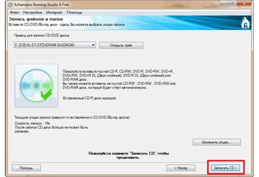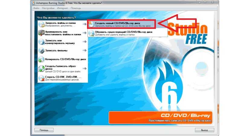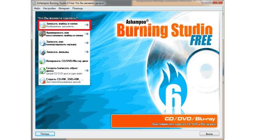 Чтобы записать диск с помощью Ashampoo Burning Studio Free, необходимо сделать следующее: