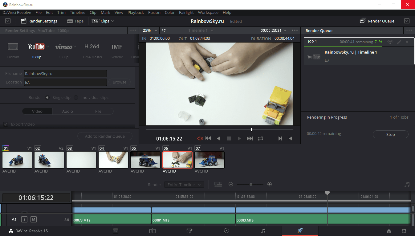 Рендеринг видео для YouTube в Resolve