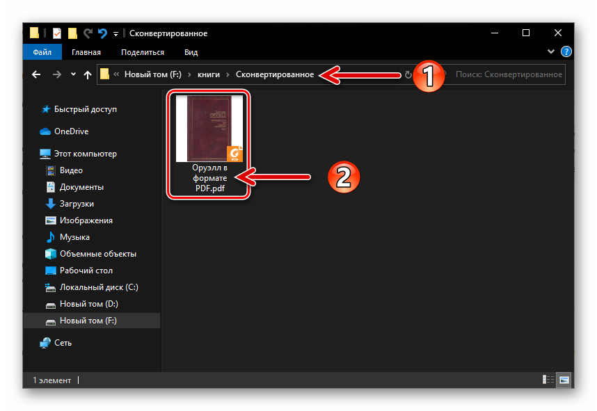 Перейдите по пути расположения DjVu-файла, который нужно сконвертировать в формат PDF, выделите его и затем нажмите «Открыть».