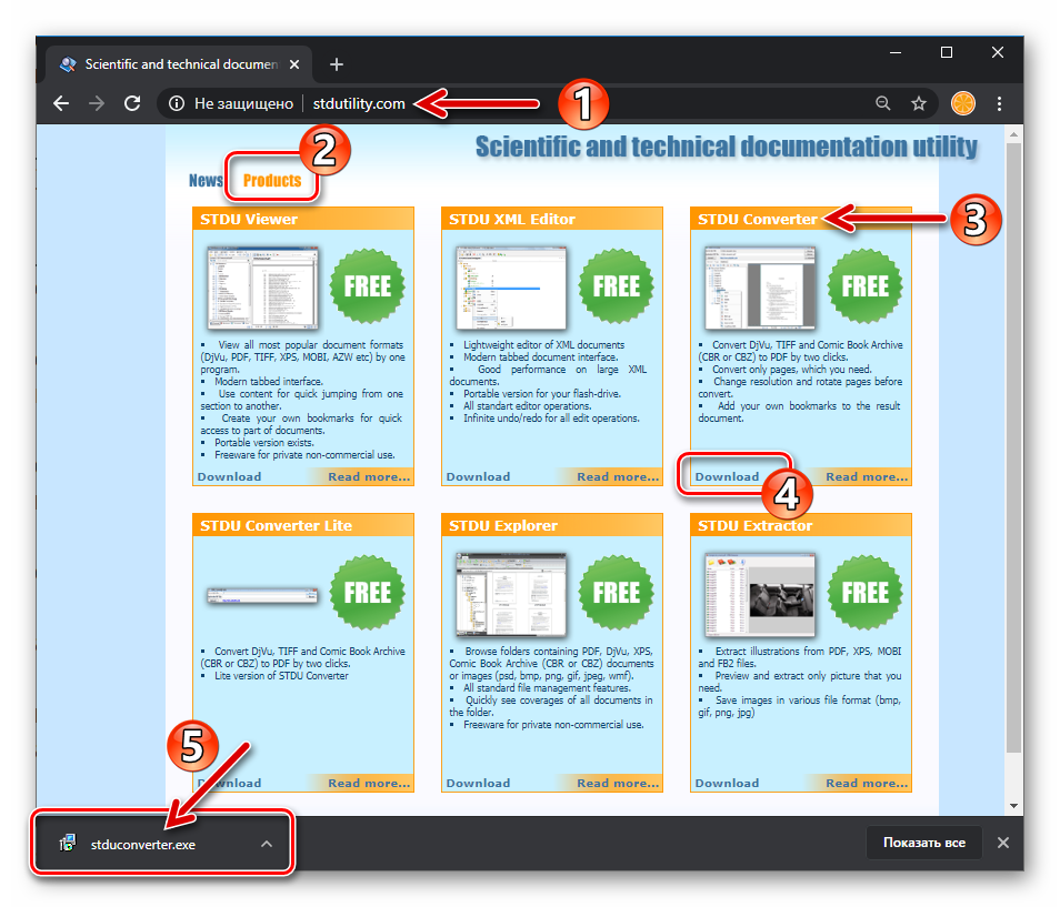 - Перейдите по указанной выше ссылке и загрузите дистрибутив утилиты STDU Converter на диск ПК.