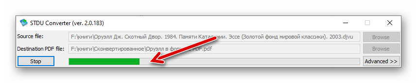Ожидайте окончания инициированной операции – ее длительность в основном зависит от объема загруженного в STDU Сonverter DjVu-файла.