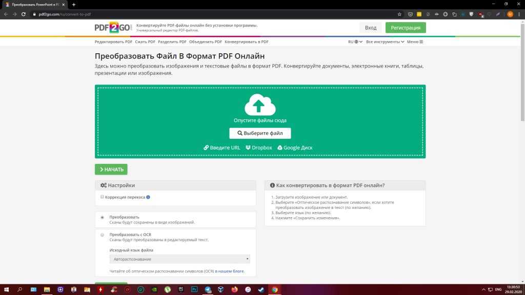 2. С помощью PDF2GO