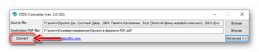 В арсенале средств, предлагаемых разработчиками известного средства для просмотра документов различных типов STDU Viewer, имеется специализированная утилита-конвертер, позволяющая выполнить преобразование DjVu в PDF буквально за пару кликов мышью.