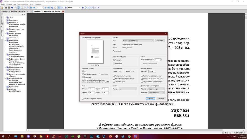 Укажите место на компьютере и нажмите «Печать»: Foxit Reader выполнит конвертацию и сохранит PDF в выбранную папку.