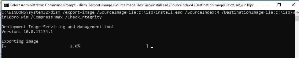Dism /Export-Image /SourceImageFile:F:\Win10\sources\install.wim /SourceIndex:1 /DestinationImageFile:F:\Win10\sources\install.esd /Compress:recovery