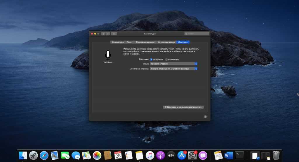 В macOS голосовой ввод сначала нужно активировать. Для этого откройте меню Apple (иконка яблока) и выберите «Системные настройки» → «Клавиатура» → «Диктовка». Поставьте флажок «Включена» и выберите клавишу для перехода в режим голосового ввода. С её помощью вы сможете включать диктовку в любой программе, которая поддерживает текстовый ввод.