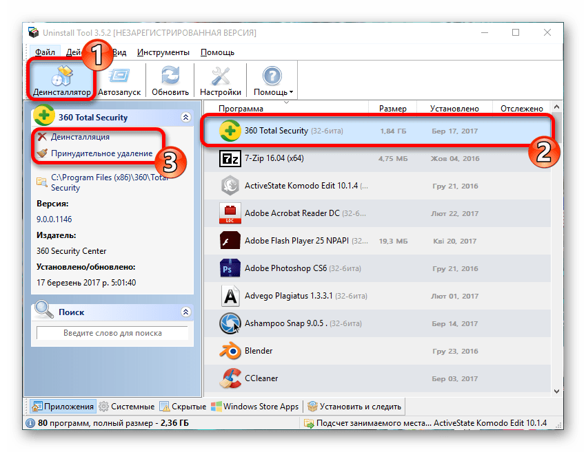Uninstall Tool — специальная утилита, которая специализируется на полном удалении всяческих приложений. Бесплатна 30 дней для ознакомления со всеми доступными инструментами. Данная утилита необходима тем, у кого приложения полностью не удаляются стандартными способами.