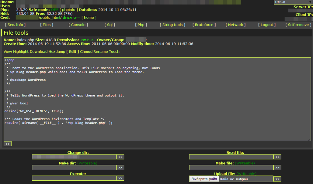 Интерфейс вредоносного файла «Shell» который я обнаружил на своём сайте