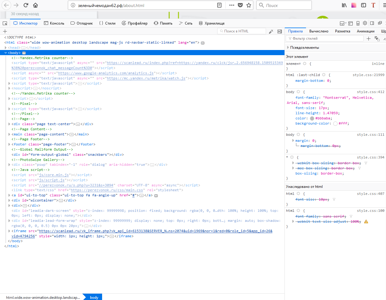 - Встроенные фреймы и скрипты (можно найти по словам iframe и javascript).