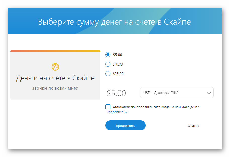 Но дело в том, что пополнить Skype на сумму меньше 5 долларов получится только специальным ваучером.
