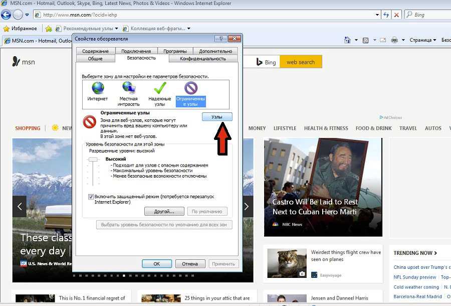 9.Введите в поле «Добавить в зону….узел» такой адрес: «https://rad.msn.com».