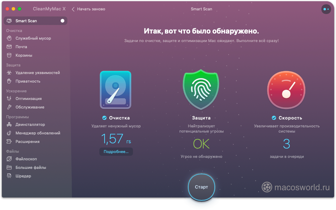 - Запускаю функцию Smart Scan и удался всё, что она предлагает;