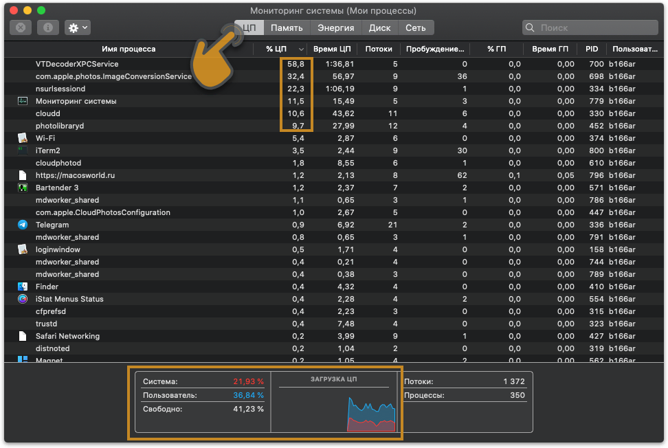 Если система начала притормаживать — откройте Мониторинг системы и посморите, какие приложения или процессы занимают больше всего ресурсов.