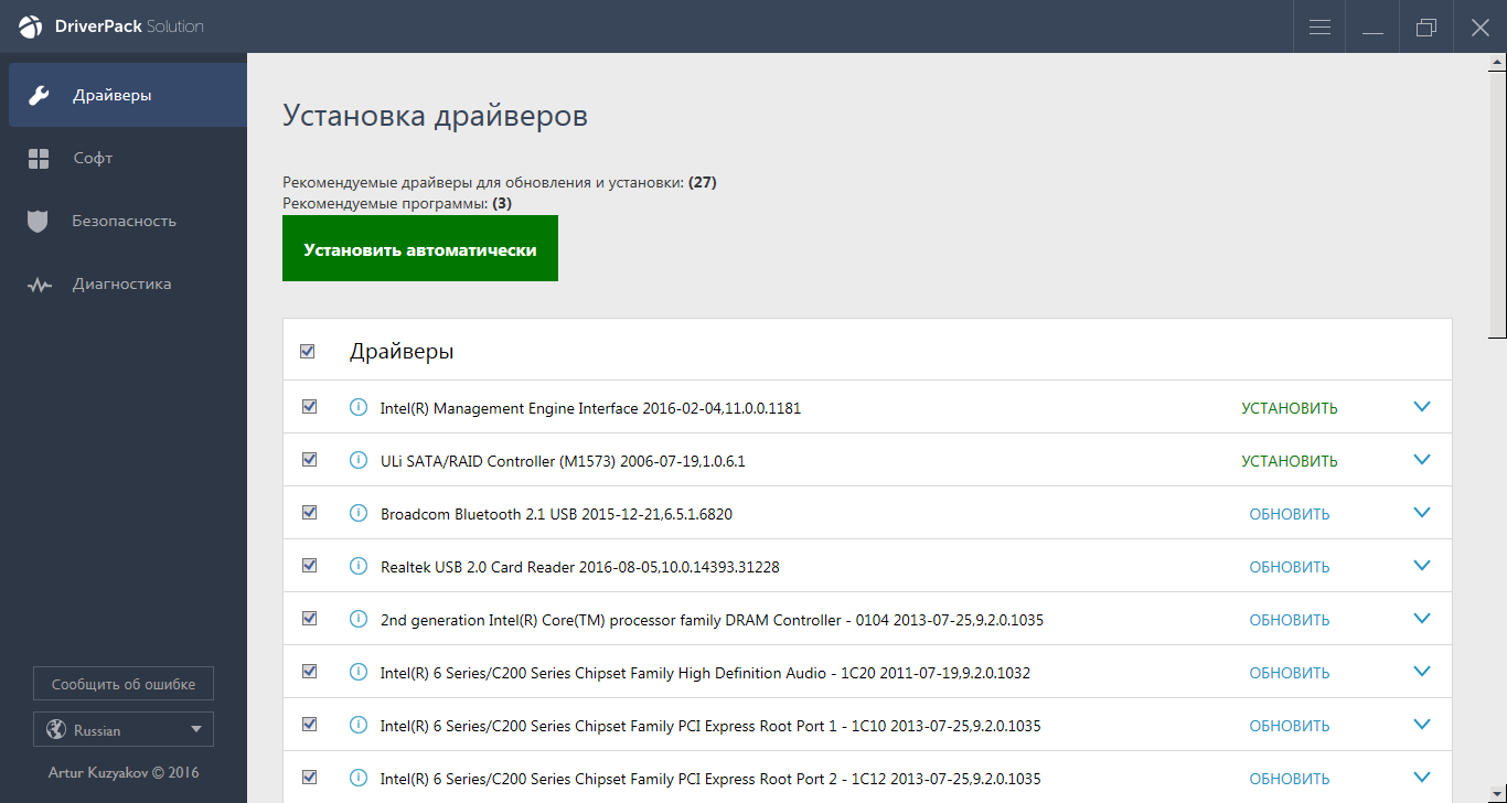Рис. №6. Страница установки драйверов в DriverPack Solution