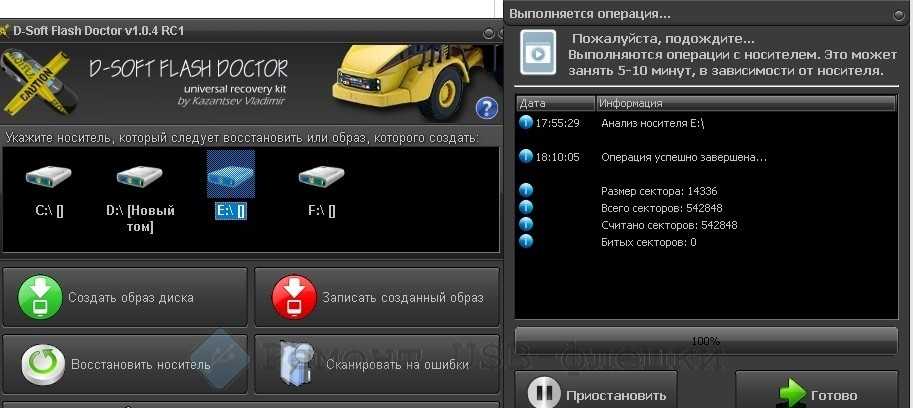 Также этот инструмент создает образы USB-flash накопителей. И если в дальнейшем произойдет сбой, у вас все данные, хранившиеся на этом устройстве, записаны. Поэтому D-Soft Flash Doctor — полезная утилита, которой стоит воспользоваться даже при работоспособности запоминающих устройств.