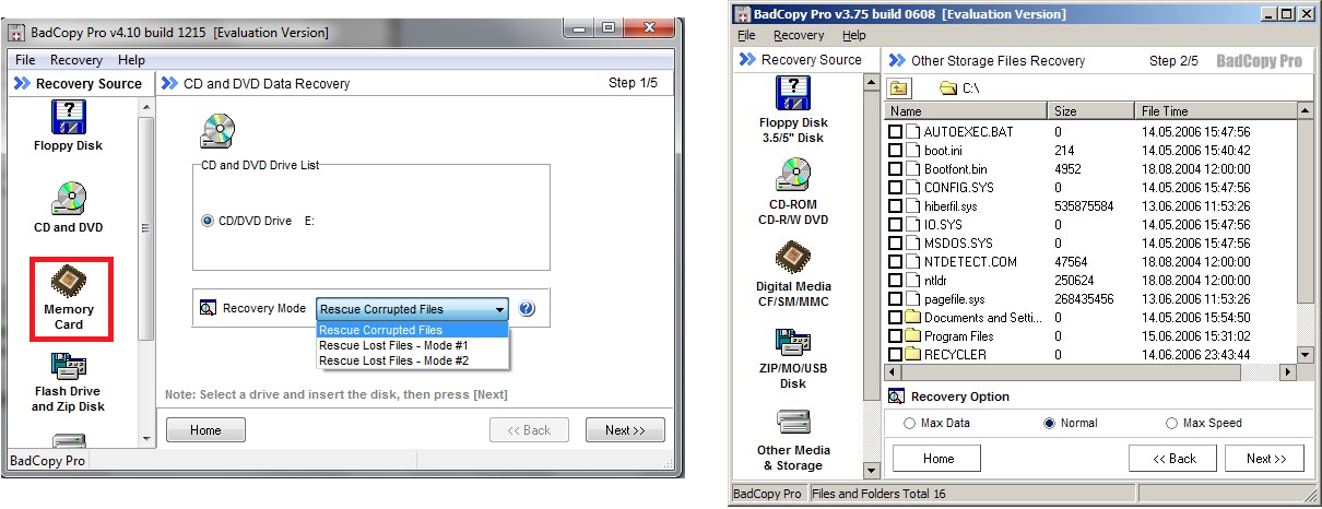 BadCopyPro – жмём слева на Memory card, потом Next, ещё раз Next, ждём окончания процесса и видим список нужных файлов.