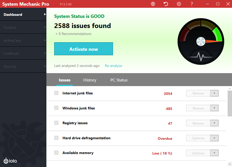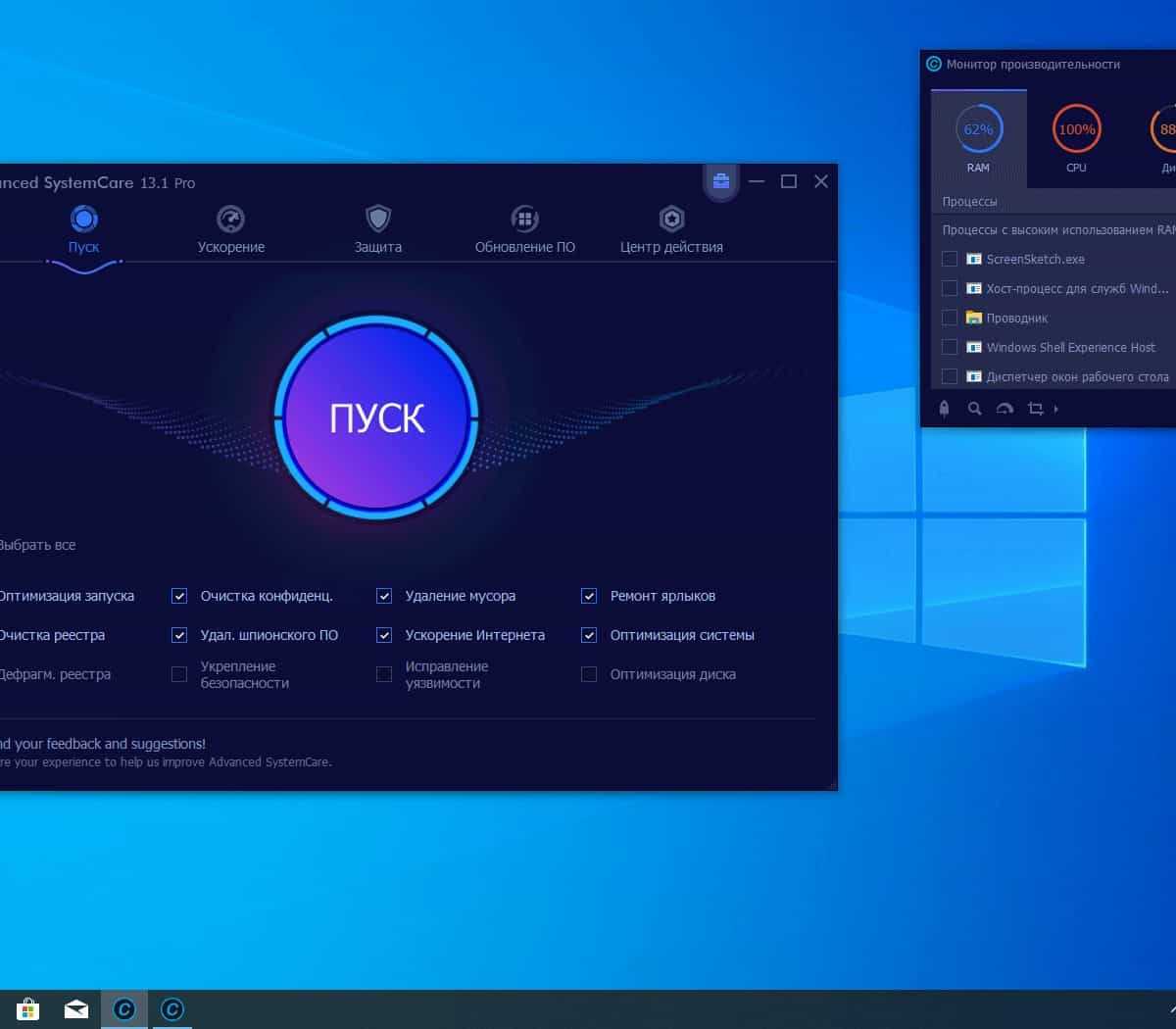 Последняя программа по порядку, но не по значению, поскольку Advanced SystemCare от IObit неоднократно занимала первые места в независимых рейтингах, а также собрала довольно хвалебные отзывы от рядовых пользователей.
