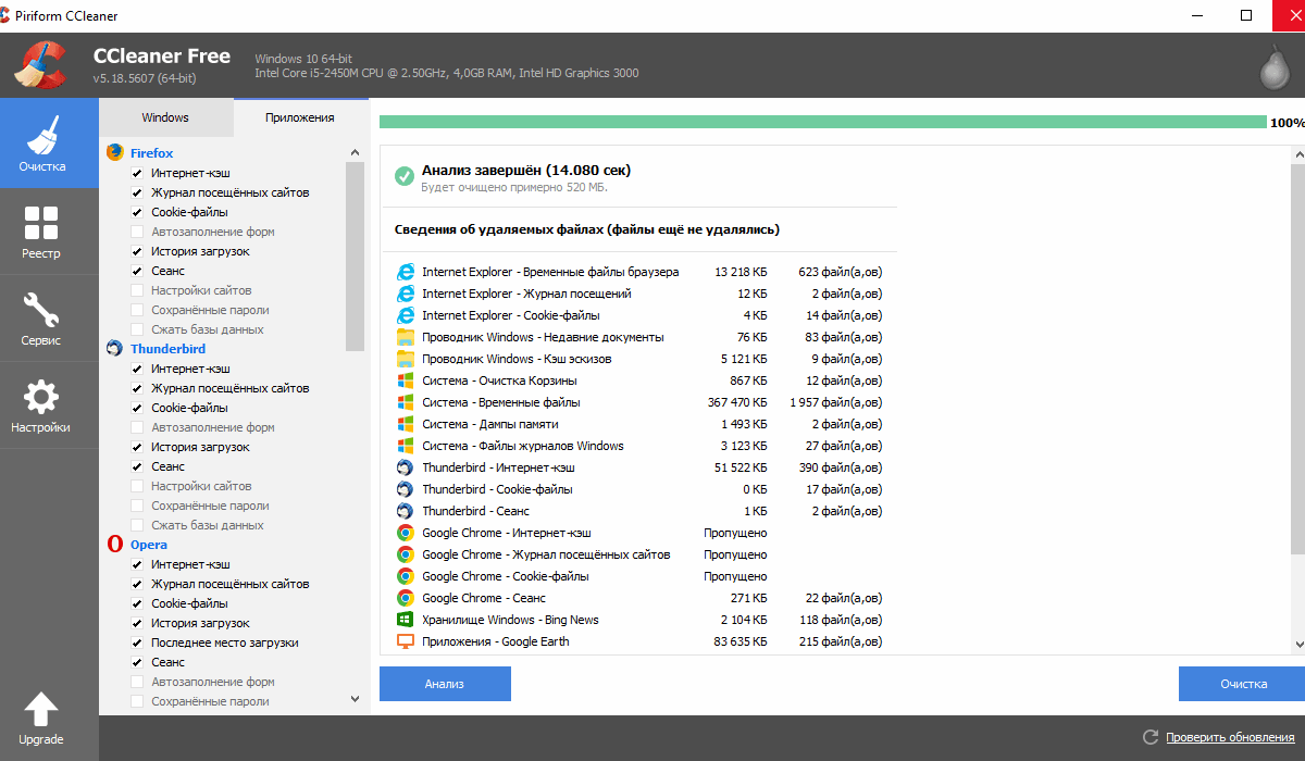 Она также способна удалять кэш и прочий «мусор». Уже во время первого запуска происходит проверка в автоматическом режиме, по завершению которой демонстрируется список всех файлов, пригодных к удалению.